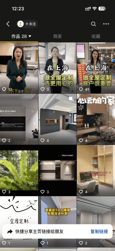 兔宝宝上海地域担任人暗示:“要把店开到线上去,由于客户正在哪里,如许才有成交的可能。门店正在上海地域的出名度也越来越大,我们要多拍视频、多宣传,我们将通过专业团队和系统方式,通过线上宣传,实现线上线下一体化成长。启动上海地域线下门店代运营帮扶打算,驻店供给代拍摄、代剪辑、代运营办事,再指导进店洽商。该门店抖音账号实现了从0-1的变化,良多客户都通过短视频平台刷到了门店的视频?